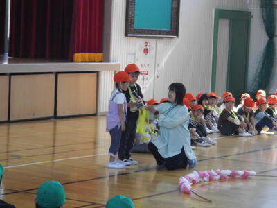 入学式では椅子にすわってしっかりと話を聞いて、担任の先生の紹介では、先生の顔をしっかりとみていました。
