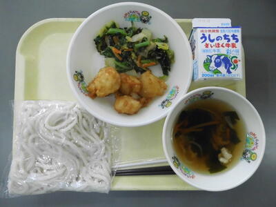 牛乳 きつねうどん 鬼まん ごますあえ