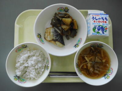 牛乳 ごはん さばの塩焼き かわりきんぴら 太陽のちから汁