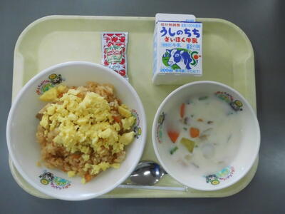 牛乳 オムライス かぶのクリームスープ