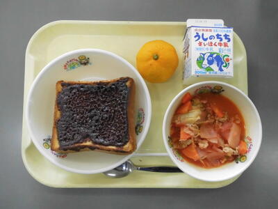 牛乳 きなココアトースト ボルシチ みかん