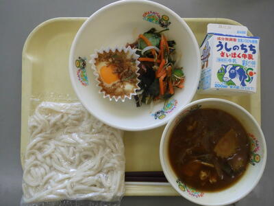 牛乳 カレー南蛮うどん おかかココット じゃこサラダ