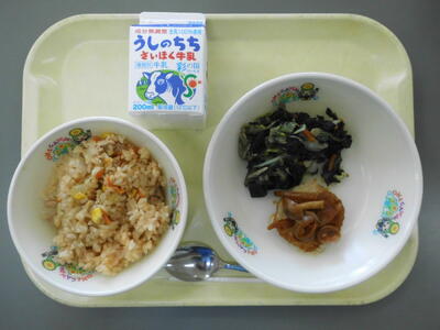 牛乳 ツナピラフ つくねバーグ ほうれん草のソテー