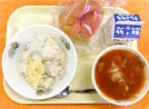 牛乳 ひき肉ともやしのあんかけ丼 豆乳みそスープ
