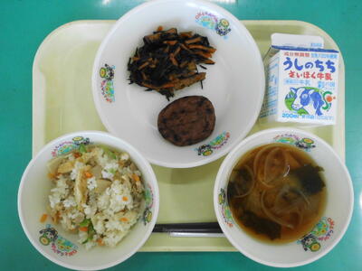 牛乳 たけのこごはん あじ入りさんが ひじきのいため煮 みそ汁